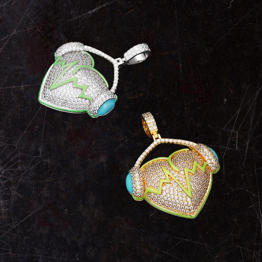 Creative Headphone on Luminous Cold Enamel Heartbeat Design Pendant Necklace