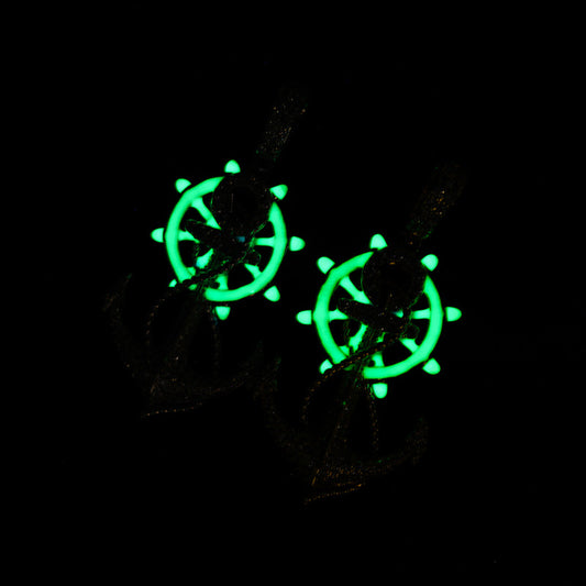 Iced Out Charm Anchor vs Luminous Cold Enamel Rudder Pendant Necklace, Fully Shine 5A CZ Diamond Gold Plated Hip Hop Fashion Jewelry for Men