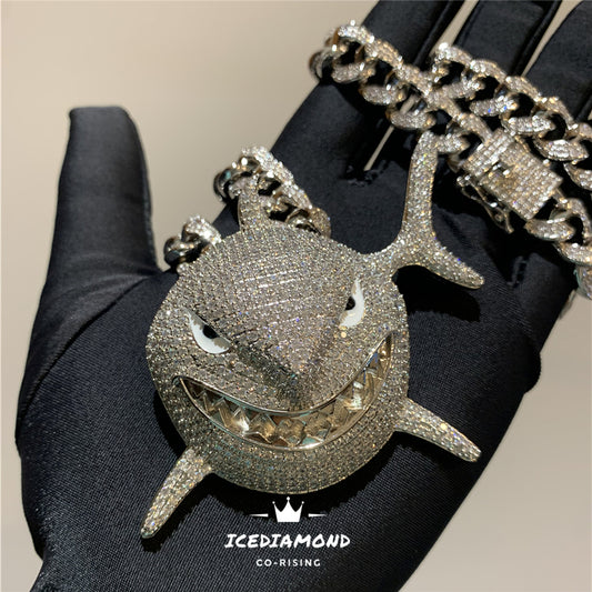 Luxury CZ Diamond 69 Shark Pendant Necklace