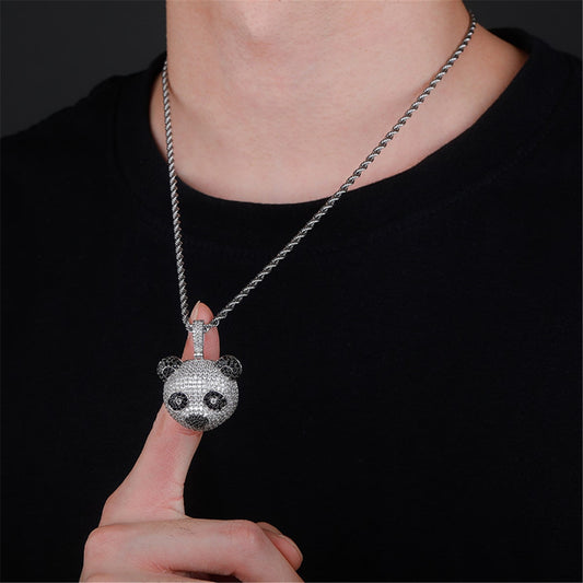 Iced Out Bright CZ Diamond Lil Panda Pendant Necklace