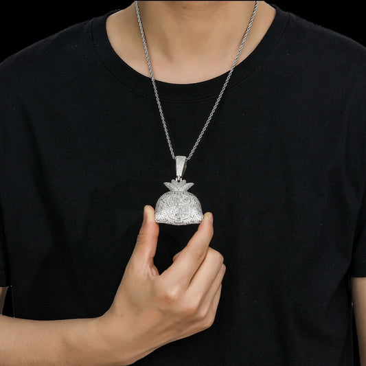 ICEDIAMOND Men's 18K Big Dollar Bag Bling CZ Diamond Pendant Chain Necklace, Iced Out Gold Plated Large Money Bag Hip Hop Urban Charm Jewelry