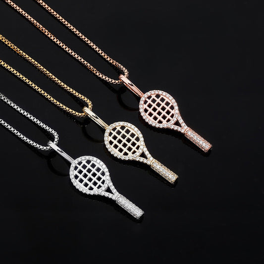 ICEDIAMOND 925 Sterling Silver Tennis Racket Dainty Pendant with 20-inch Box Chain Necklace, Iced Out Bling CZ Diamond Pendant Athlete Fashion Jewelry for Tennis Lover