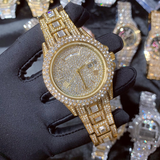 Men's 43MM Fashion Colored Roman Dial Iced Out Wrist Watch